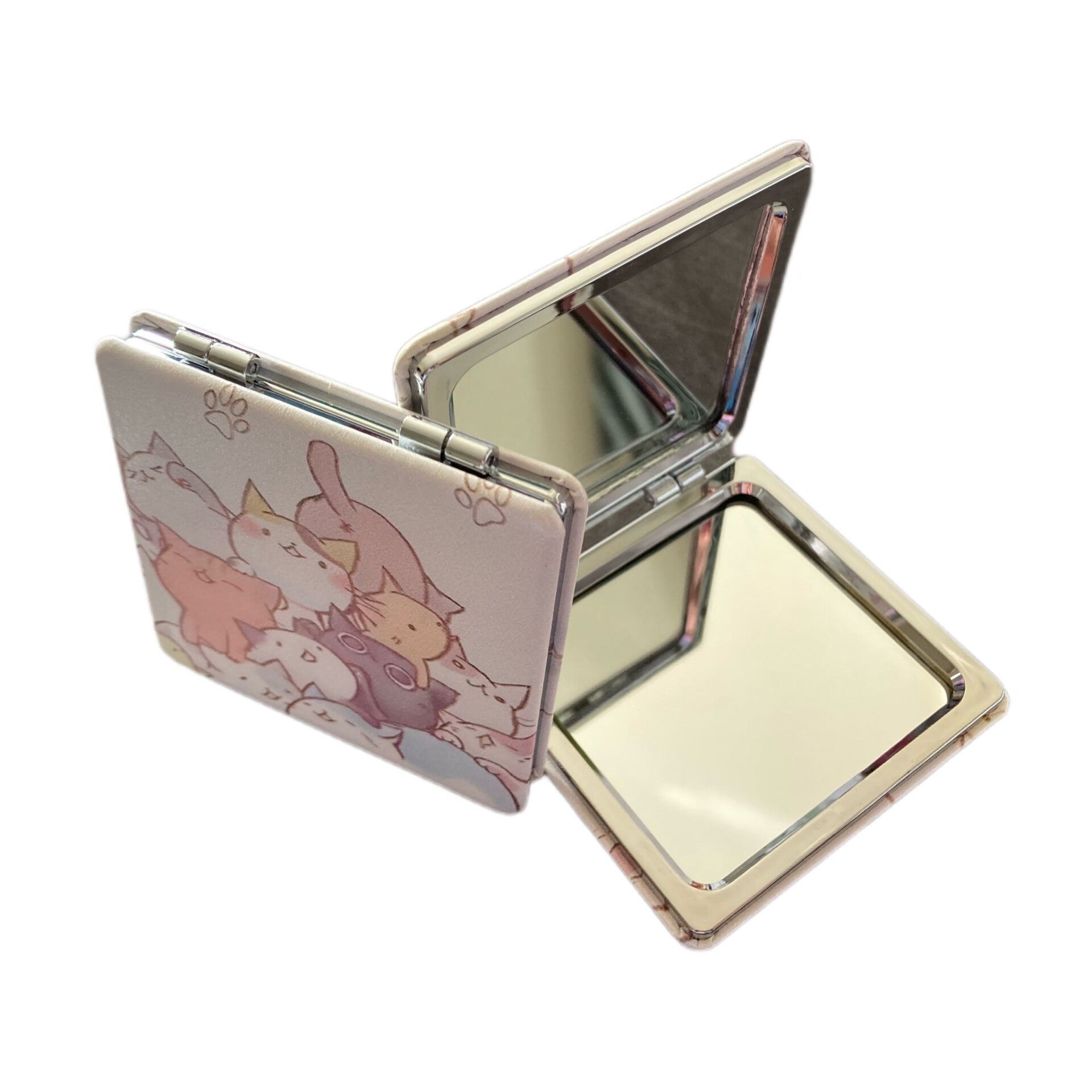Deze snoezige handspiegel is slechts 7*7cm waardoor hij makkelijk mee te nemen op reis, onderweg naar je werk of naar een avondje uit. Past in bijna elke handtas of toilettas. Met spiegel aan beide kanten.
